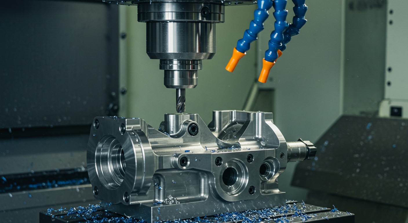 Рис. 1. Обработка сложной металлической детали на ЧПУ-станке