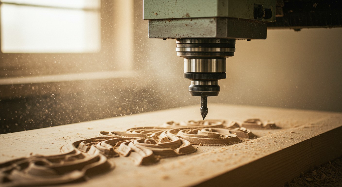 Рис. 1. Процесс фрезеровки декоративных элементов на ЧПУ