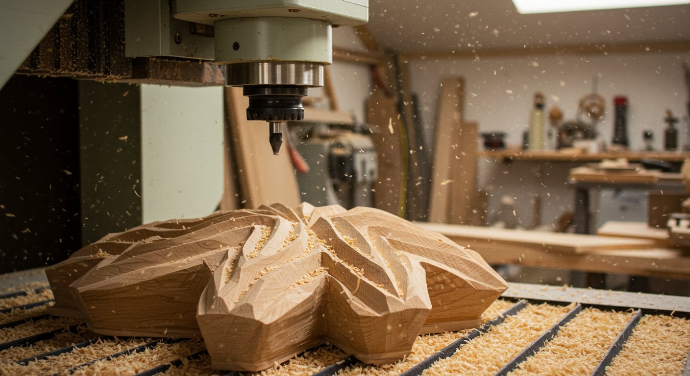Процесс начинается с разработки дизайна в CAD-программах. На этом этапе формируется детальная цифровая модель изделия. Далее создается управляющая программа для ЧПУ станка, где задаются скорость вращения шпинделя, подача фрезы и глубина реза. Обычно художественная фрезеровка выполняется в несколько этапов: черновой проход для снятия основного объема материала и чистовой проход для получения точных деталей и гладкой поверхности.