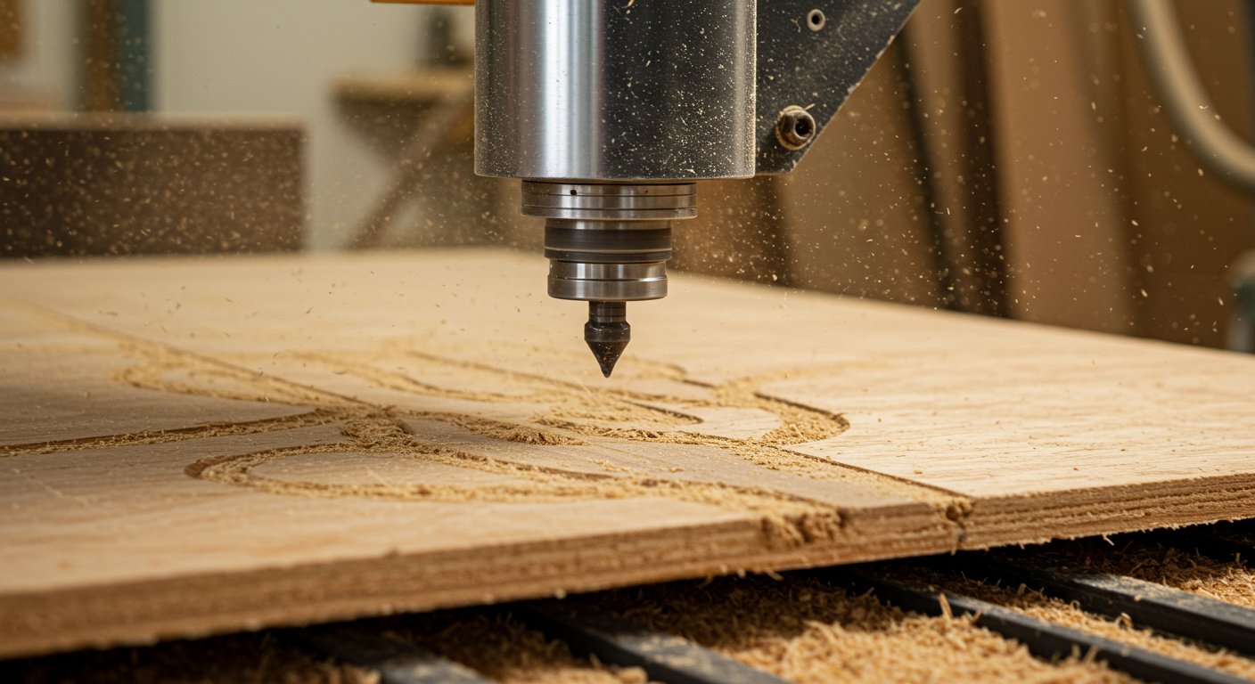 МДФ и ДСП имеют различную структуру, что определяет подход к фрезеровке. МДФ представляет собой древесно-волокнистую плиту средней плотности, отличающуюся однородностью структуры и отсутствием крупных сучков. Это позволяет получить высокоточную обработку с ровными кромками и минимальными дефектами. ДСП состоит из прессованных древесных частиц и связующих компонентов, и при фрезеровке требует аккуратного подхода, чтобы избежать выкрашивания и образования заусенцев на кромках.